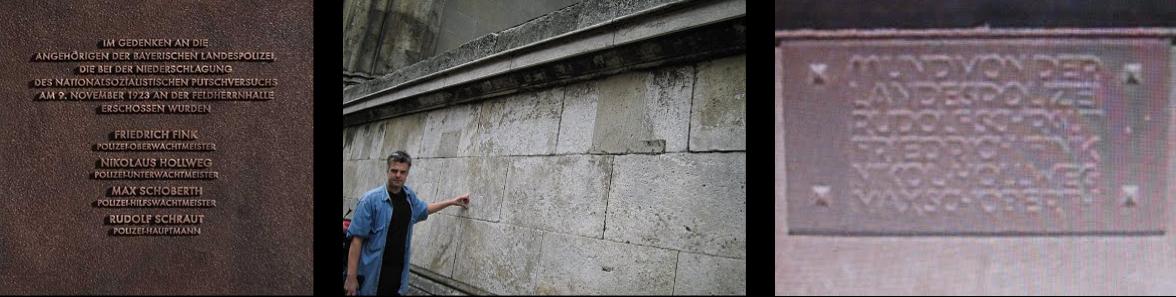A new memorial has been placed on the façade of the Residenz which reads: "In the memory of the members of the Bavarian police force, who were shot during striking down the National Socialist putsch attempt on 9 November 1923 at the Feldherrnhalle." It wasn't until March 2009 that the city authorities ultimately acquiesed to putting up any memorial following the first performance of the documentary Hitler vor Gericht following negotiations between between Interior Minister Joachim Herrmann and Lord Mayor Christian Ude. Despite the difficulty the authorities showed in honouring those who stopped Nazis, the Nazis themselves honoured the four below the memorial to the 'martyrs' on the Feldherrnhalle itself. Then again, Munich City Councilman Karl Richter called in November 2018 on Facebook for "Freedom for Ursula Haverbeck," describing the 90-year-old a "dissident in the supposedly freest state in German history" and who is currently sitting in prison for denying the Holocaust.