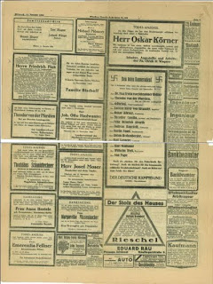 I'm excited to share a newspaper that was saved by the great-grandfather of a student of mine, shown me by the mother- the München Neueste Nachrichten from November 14, 1923.