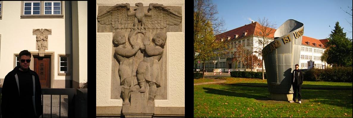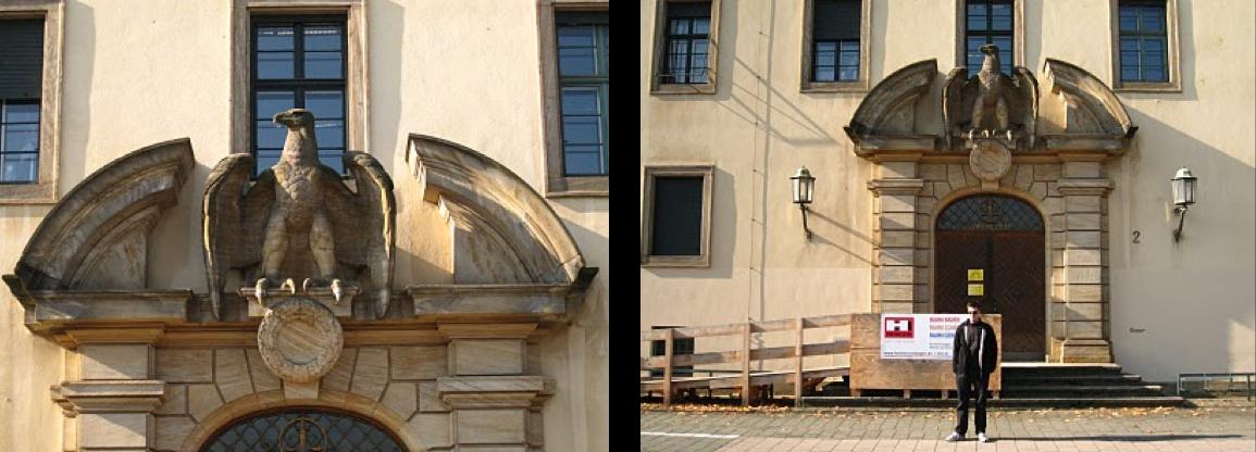 Above the door the small bust replaces the one of Hitler's during the Third Reich whilst outside one can find another eagle defaced on the Hausecke der ehemaligen Jägerkaserne in Marburg
