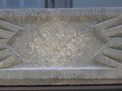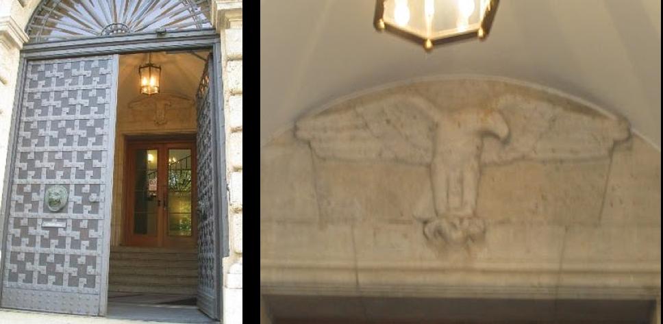 the shield (dated 1936) and one of the carvings adorning the side of the