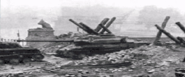 Looking at the Gate from the other side from the Tiergarten with an abandoned Tiger tank from the Panzerabteilung Muncheberg. The last operational Tiger I tank in the absolute centre of Berlin between April 28, 1945 and May 1, 1945 was a vehicle of Panzerabteilung Müncheberg (formed in February 1945 from remnants of Panzer-Lehr-Division and the Kummersdorf test unit), turret number almost certainly 323, positioned amongst the trees on the north-eastern corner of the Königsplatz directly to the right of the Reichstag when looking from the east. It covered the open square in front of the Reichstag and the Moltke Bridge across which the Soviet 79th Rifle Corps advanced after midnight on April 29, 1945. The Königsplatz defences consisted of flooded zones created by blown bridges, deep antitank ditches, trenches, several 88 mm guns still on wheeled carriages, and this single Tiger I. On the morning of April 29, 1945 the Germans launched a brief counter-attack from the Königsplatz area that temporarily halted the Soviet advance; the Tiger engaged T-34-85s and SU units attempting to cross the bridge and square. Throughout April 29, 1945 and April 30, 1945 the tank continued to fire support until it ran out of fuel and ammunition sometime during the night of April 30/May 1, 1945. The crew abandoned the vehicle approximately one hundred metres north-west of the Brandenburg Gate at the end of Charlottenburger Chaussee (today’s Straße des 17. Juni) near the Tiergarten, where Soviet photographs taken on May 2, 1945 show the knocked-out or abandoned Tiger I with its turret turned backwards, the last Tiger I to have fought in the very heart of the city.