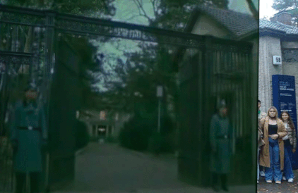 My students at the site marking the political sitiutation at the time the Berlin wall was about to fall as we make our way on foot to the site of the Potsdam Conference at Cecilienhof Palace. For the Allied conference participants, some of whom came via Berlin, Soviet pioneers installed a pontoon bridge over the Havel in place of the destroyed Glienicke Bridge. Reconstruction of the bridge began on November 3, 1947. Construction manager Hans Dehnert had the collapsed steel structure lifted and reinserted into the remaining parts of the bridge in their original form. However, repairs to the supporting structure reduced the bridge's load-bearing capacity. For this reason, the previously cantilevered footpath consoles were relocated inwards, reducing the roadway width from 13 to 11 metres. The bridge was reopened on December 19, 1949, in the attendance of high-ranking DDR officials, such as the then-Transport Minister Hans Reingruber. A cabinet decision by the state government of Brandenburg determined that the structure was to be renamed the Bridge of Unity. A white line was drawn exactly in the middle of the bridge, marking the border between the DDR and West Berlin. The temporary wooden structure disappeared in 1950. Since then, the bridge has had a different paint job with the eastern part of the bridge somewhat darker. From 1952, the bridge was closed to private traffic as West Berliners and West Germans could only cross with a special permit. DDR citizens could continue to cross until 1961, but were checked. Soviet military checkpoints were set up for members of the military liaison mission, having heir headquarters in West Berlin and their official locations in the immediate vicinity of Potsdamer Seestrasse (Britain) and in Sacrow (US). From there they could, in accordance with the Potsdam Agreement, make inspection trips to military installations in the DDR.